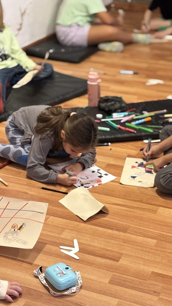 Exploramos distintas propuestas lúdicas, creativas para fomentar la imaginación y el desarrollo de distintos lenguajes, la conexión con el cuerpo, la voz, la respiración, la meditación, el acercamiento a distintos materiales, idiomas y técnicas artisticas: La cerámica, el dibujo, la pintura, la escritura, la literatura, la creación de objetos, juegos artesanales, etc. Conocemos posturas de yoga y las exploramos junto a otrxs. ¡Nos divertimos mucho!